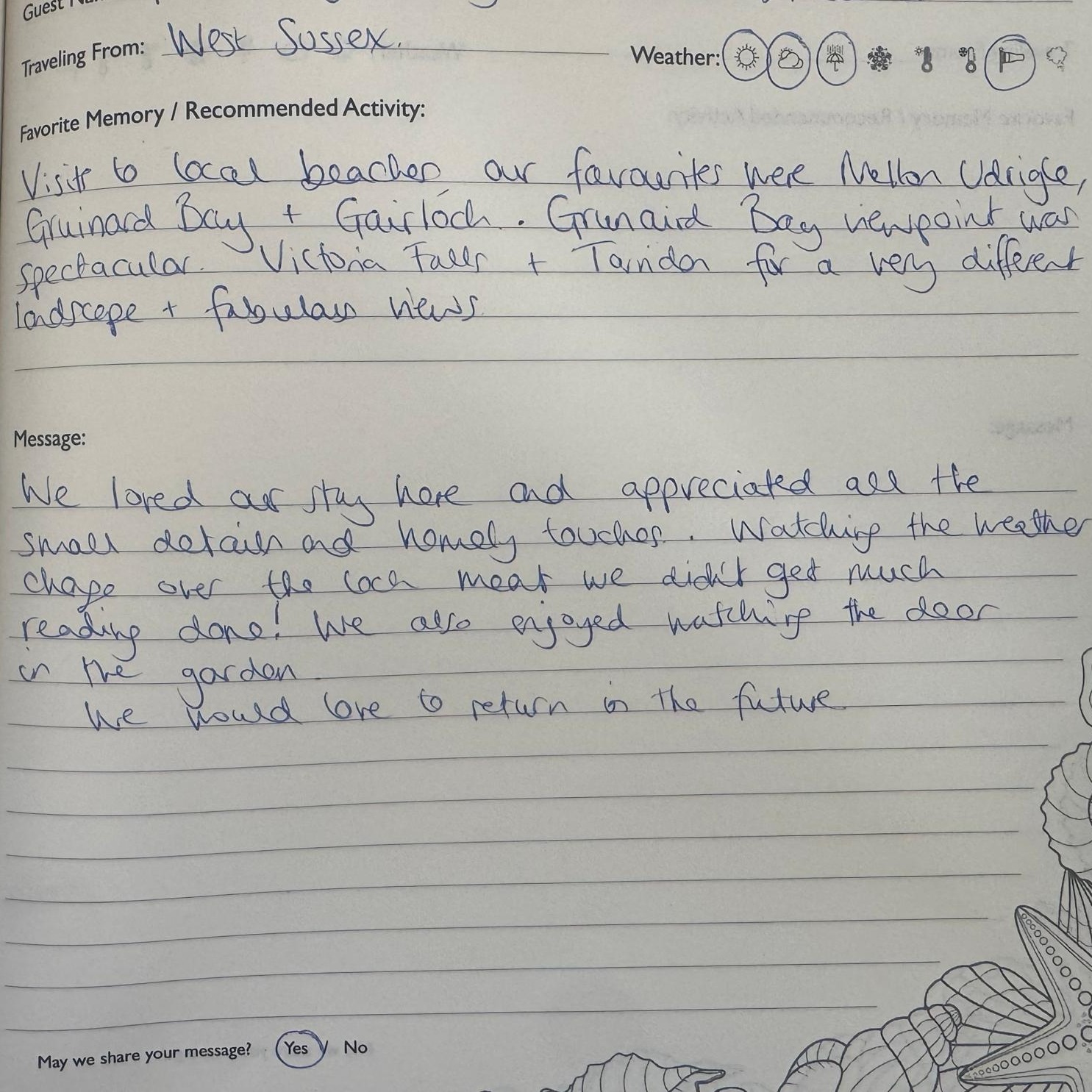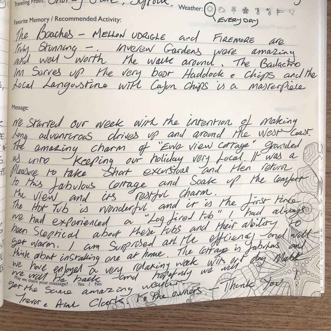 "We spent years searching for the perfect holiday home, our must haves were to be in a beautifully wild area with amazing beaches and walks nearby, great places to eat and a local well-stocked store (will a few minutes walk do!), have amazing panoramic views over the water, be cosy all year around and with a relaxing hot tub (a must have after a day out walking). We were told many times by holiday companies that it would be a struggle to find this perfect combination, but we found it and more in Aultbea, in our favourite part of Scotland known as Wester Ross. Enjoy!"