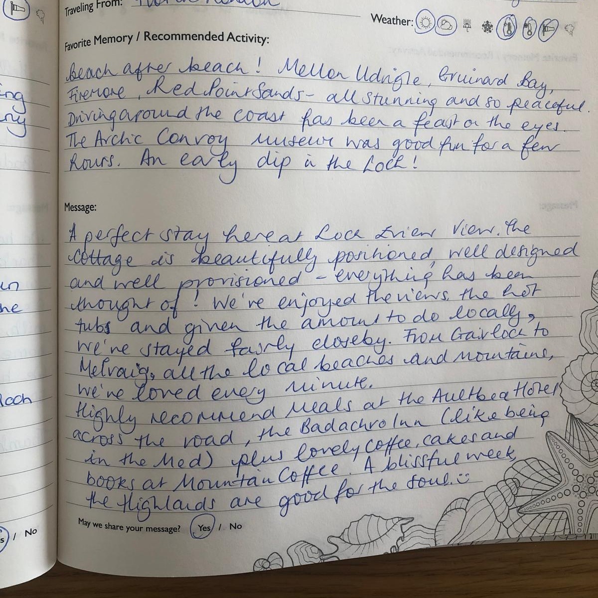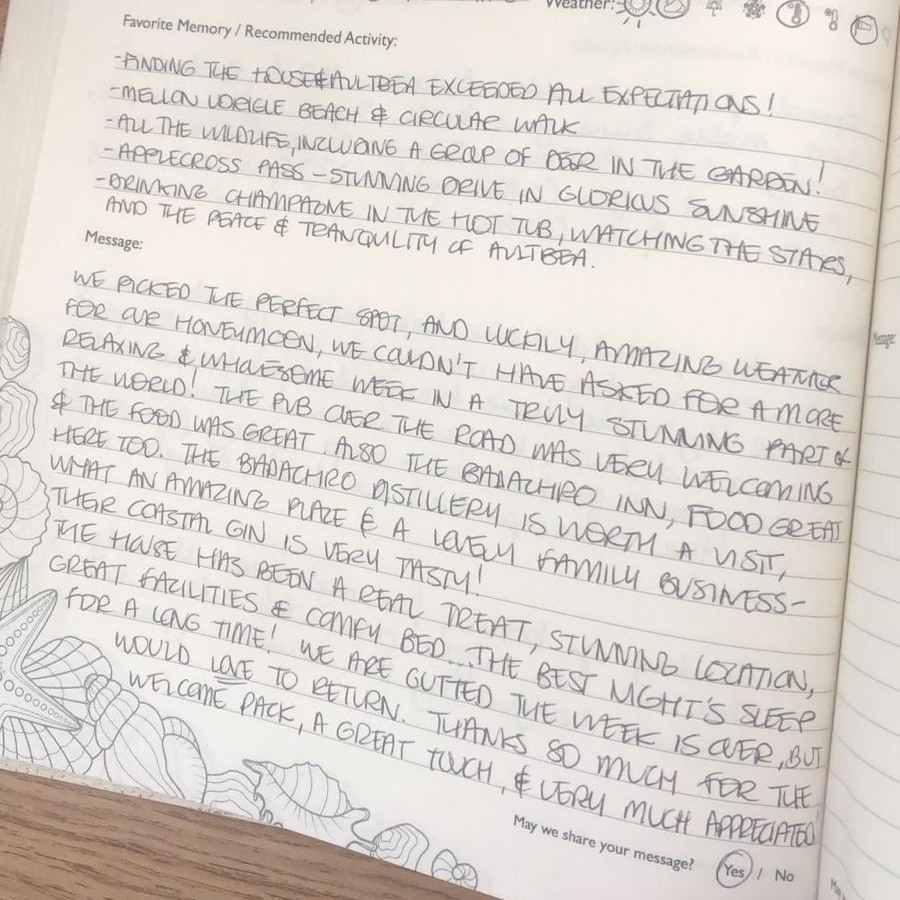 "We spent years searching for the perfect holiday home, our must haves were to be in a beautifully wild area with amazing beaches and walks nearby, great places to eat and a local well-stocked store (will a few minutes walk do!), have amazing panoramic views over the water, be cosy all year around and with a relaxing hot tub (a must have after a day out walking). We were told many times by holiday companies that it would be a struggle to find this perfect combination, but we found it and more in Aultbea, in our favourite part of Scotland known as Wester Ross. Enjoy!"
